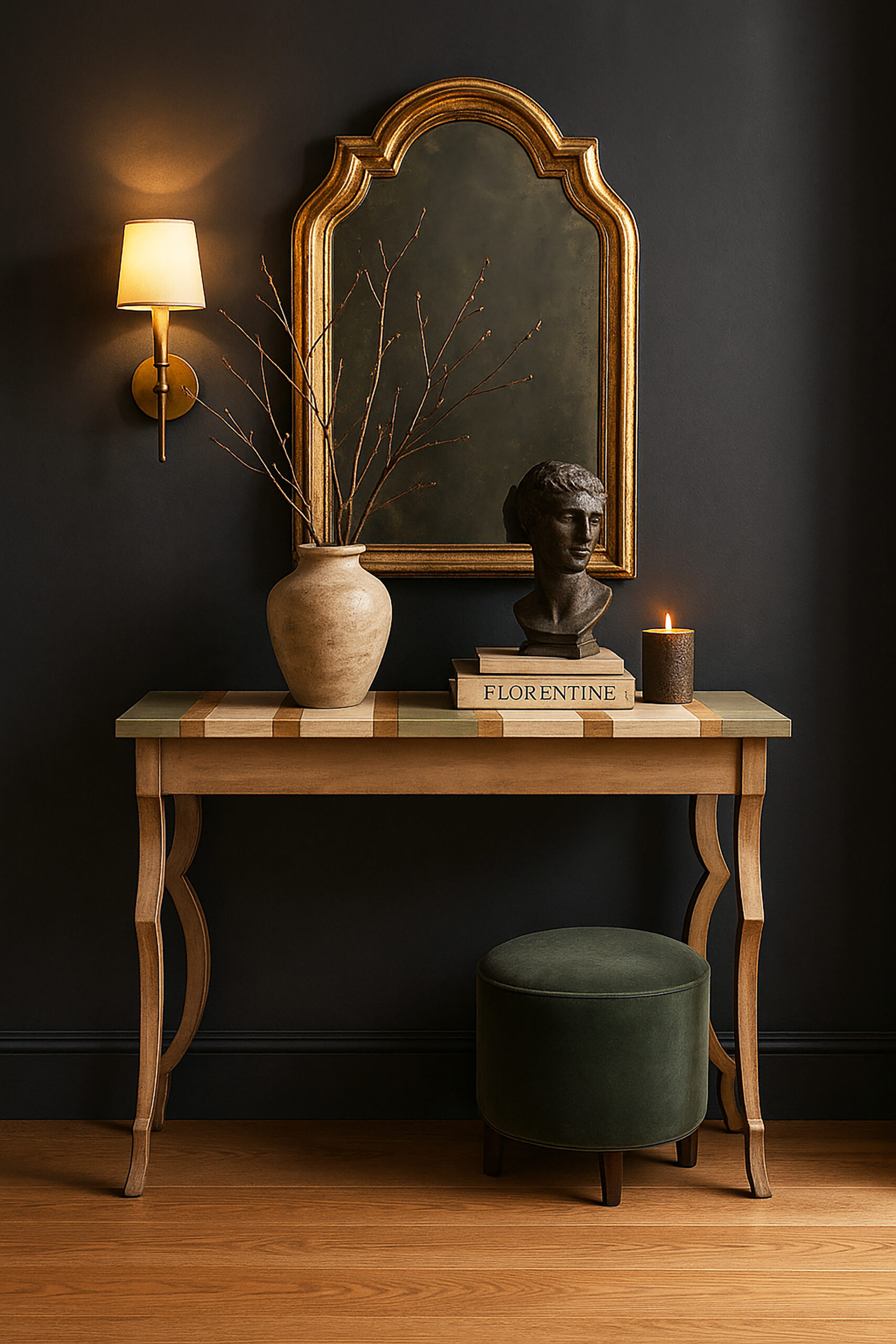 Top – Piece-Specific: Custom Striped Finish.